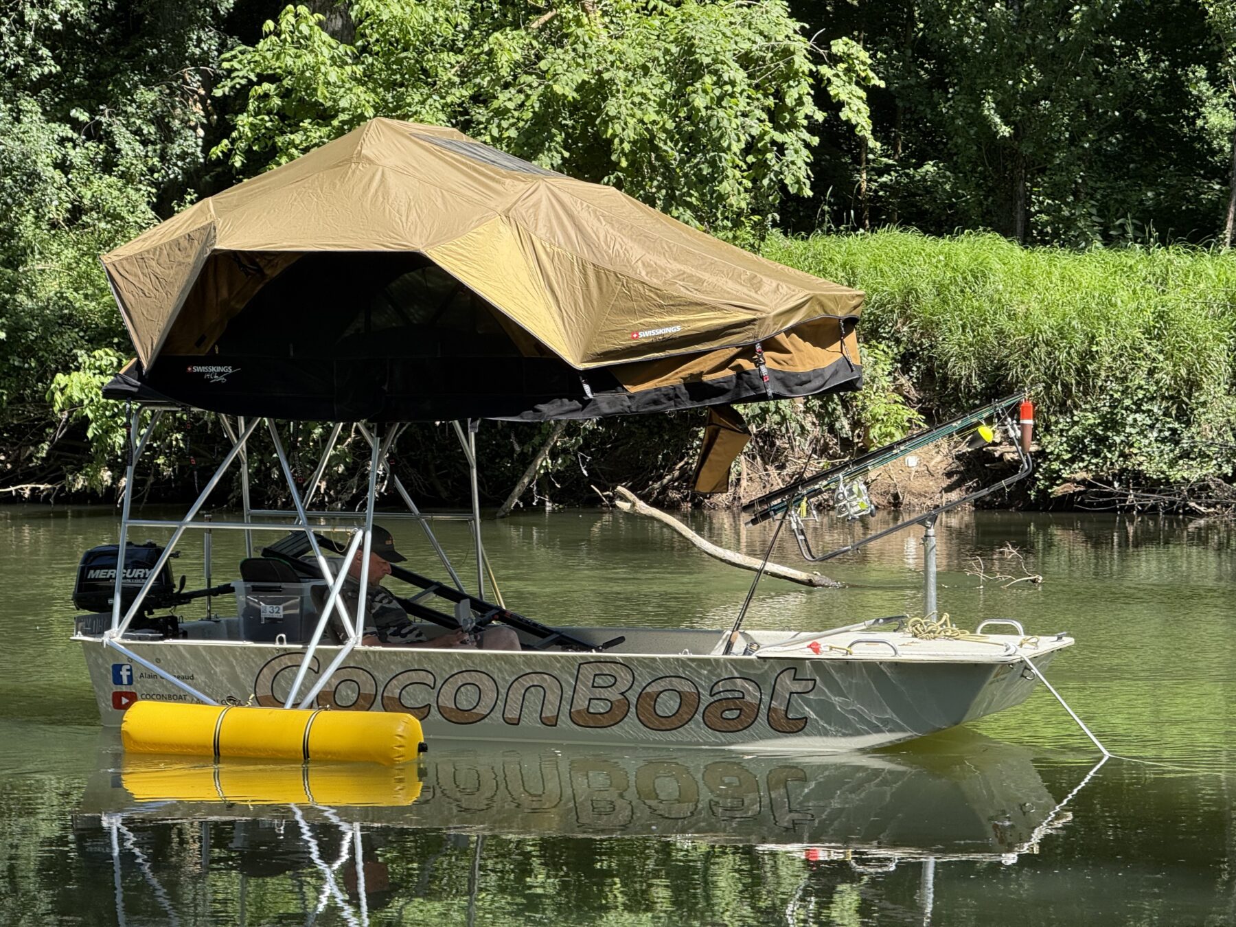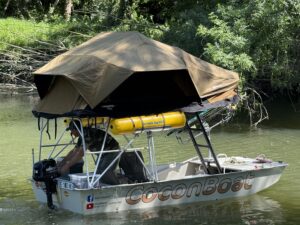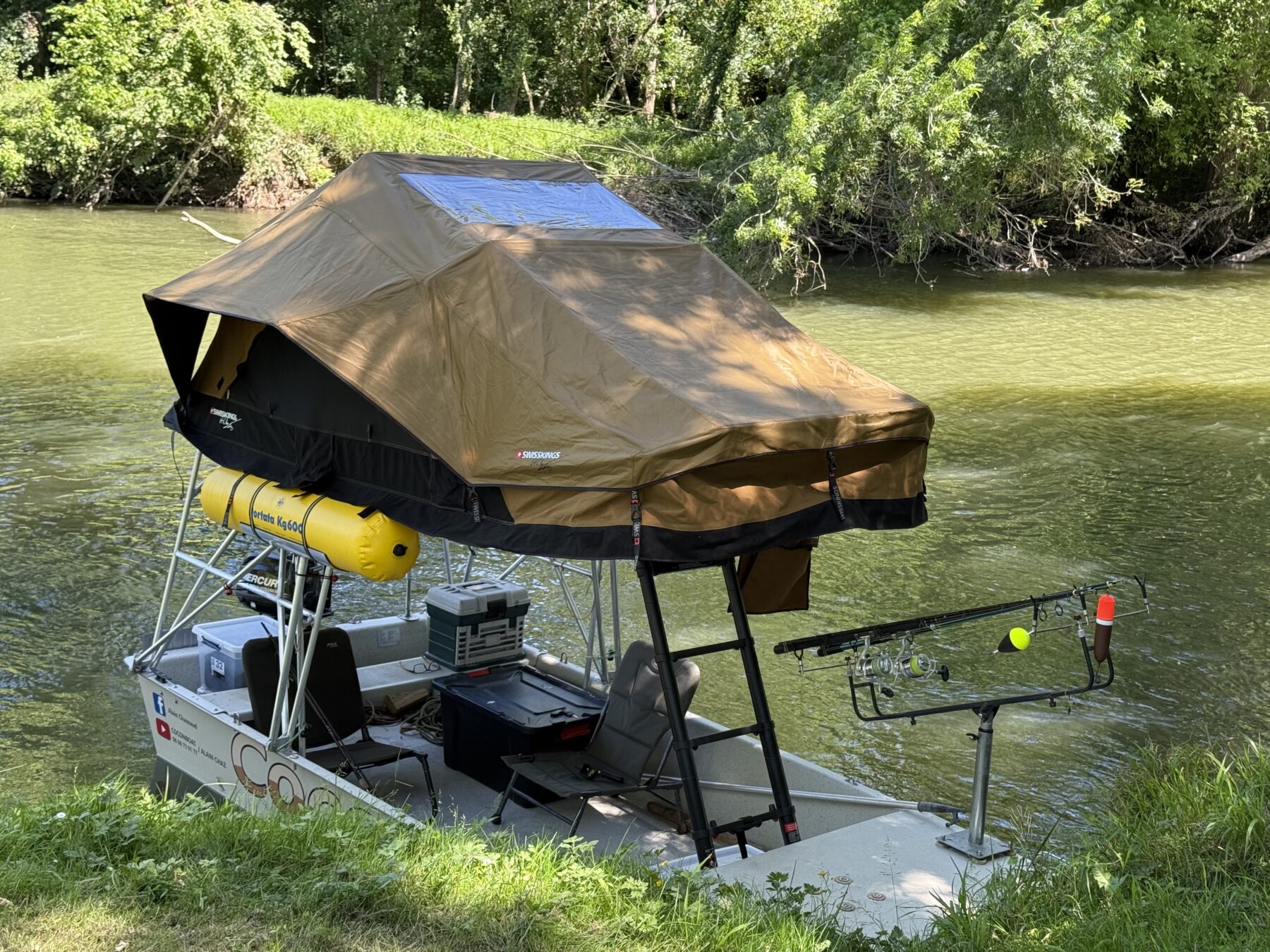 Monté sur un châssis en aluminium renforcé, il est équipé d’une tente de toit Swisskings offrant un abri naturel, confortable et étanche, permettant de pêcher de jour comme de nuit, en restant au sec.