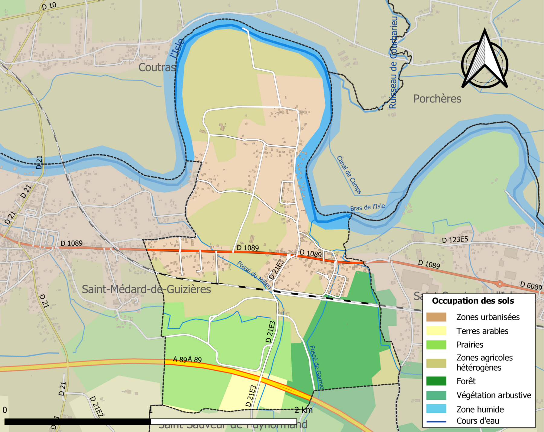 Les communes limitrophes sont  Coutras, Porchères, Saint-Médard-de-Guizières, Saint-Sauveur-de-Puynormand et Saint-Seurin-sur-l’Isle.